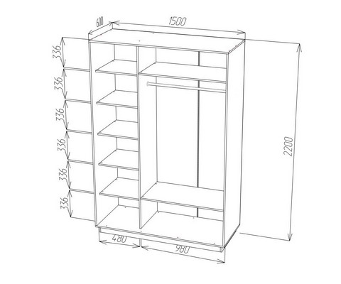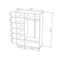 Шкаф-купе Ника-3 с алюминиевым профилем и зеркалом на одной двери cонома имеет 7 полок, 2 ниши, штангу для вешалок.