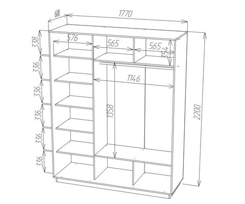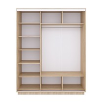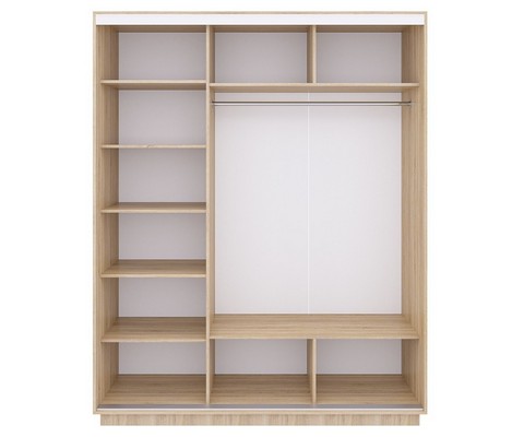 Шкаф-купе Ника-5 с алюминиевым профилем cонома без зеркал в дверях имеет 8 полок, 3 ниши, металлическую штангу для вешалок.
