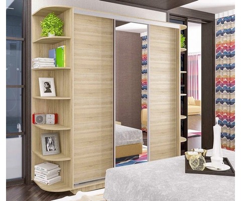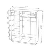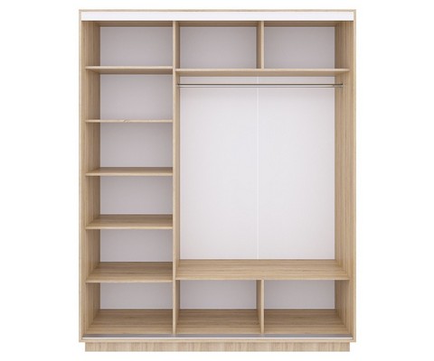 Шкаф-купе Ника-5 с алюминиевым профилем и зеркалом сонома имеет 8 полок, 3 ниши, металлическую штангу для вешалок.