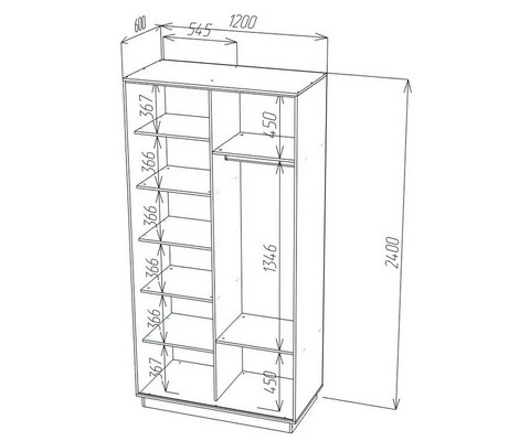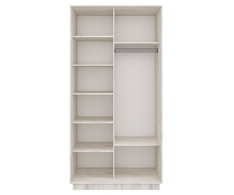 Шкаф-купе Ника-6 с алюминиевым профилем и зеркалом крафт светлый имеет 7 полок, 2 ниши, металлическую штангу для вешалок.