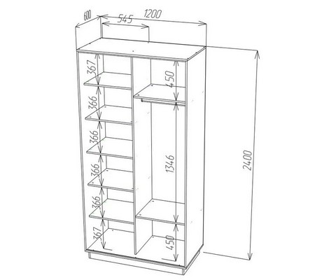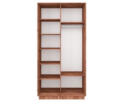 Шкаф-купе Ника-6 с алюминиевым профилем и зеркалом табак имеет 7 полок, 2 ниши, металлическую штангу для вешалок.