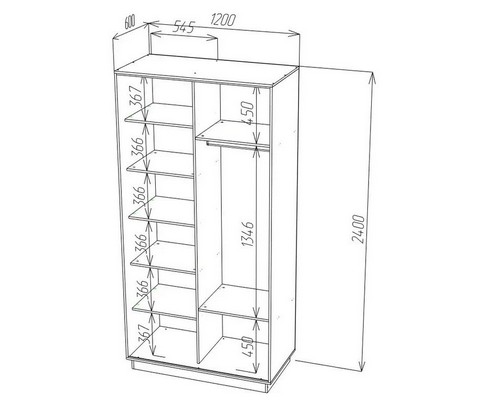 7 полок, 2 ниши, металлическую штангу для вешалок.