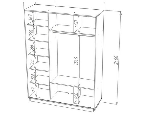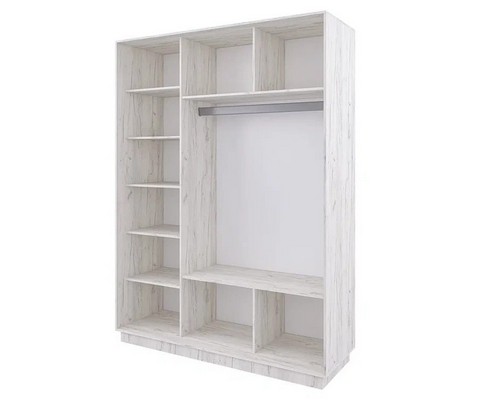 Шкаф-купе Ника-8 с алюминиевым профилем и зеркалами на 3-х дверях крафт светлый имеет 8 полок, 3 ниши, металлическую штангу для вешалок.