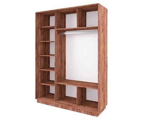 Шкаф-купе Ника-8 с алюминиевым профилем и зеркалами на 3-х дверях табак имеет 8 полок, 3 ниши, металлическую штангу для вешалок.