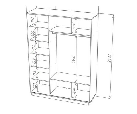 Размеры: ширина - 177 см, глубина - 60 см, высота - 240 см.
