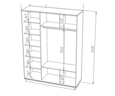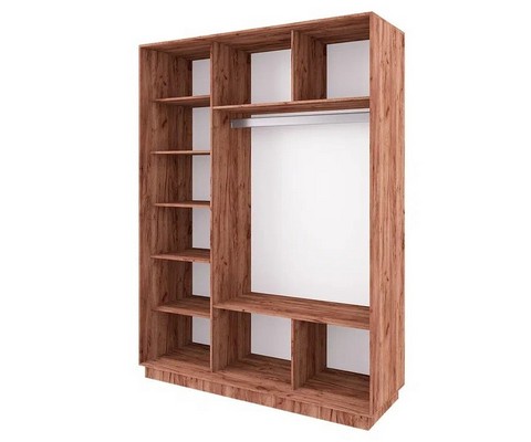 Шкаф-купе Ника-8 с алюминиевым профилем и зеркалами на 3-х дверях табак имеет 8 полок, 3 ниши, металлическую штангу для вешалок.