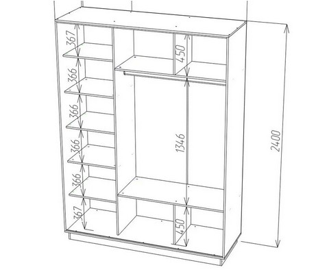Шкаф-купе Ника-8 с алюминиевым профилем и зеркалом крафт светлый имеет 8 полок, 3 ниши, металлическую штангу для вешалок.