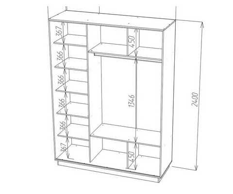 Размеры: ширина - 177 см, глубина - 60 см, высота - 240 см.