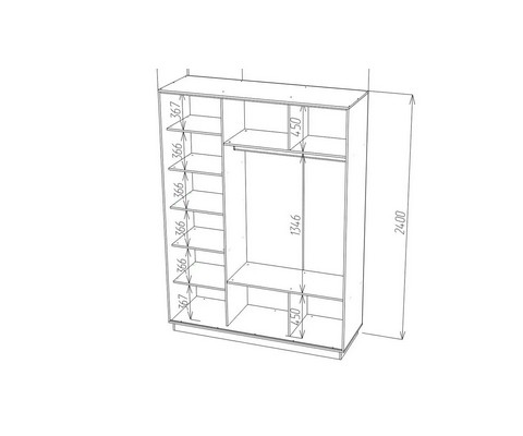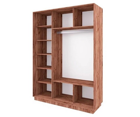 Шкаф-купе Ника-8 с алюминиевым профилем и зеркалом табак имеет 8 полок, 3 ниши, металлическую штангу для вешалок.