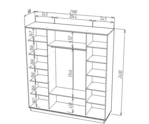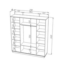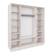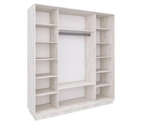 12 полок для одежды, 3 ниши, металлическая штанга для вешалок.