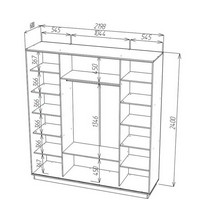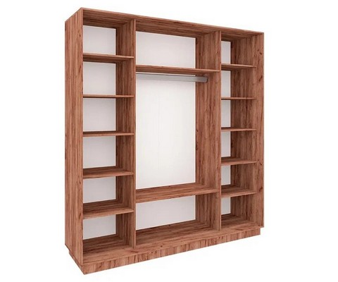 12 полок для одежды, 3 ниши, металлическая штанга для вешалок.