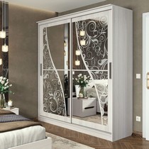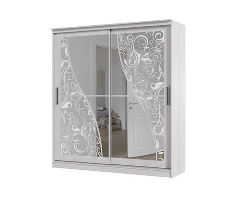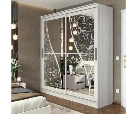 Шкаф декорирован большим зеркалом на фасаде, имеет множество полок, выдвижных ящиков и штангу для хранения ваших вещей.