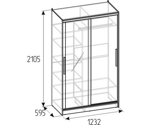 Внутреннее наполнение шкафа состоит из стеллажа для белья и стационарной штанги.