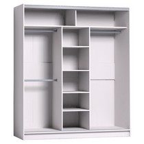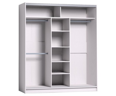 Внутреннее наполнение шкафа состоит из полок для белья и трех стационарных штанг.