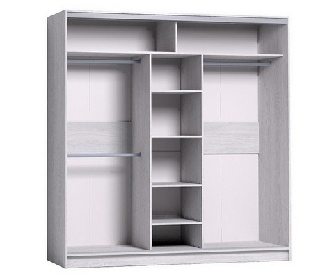 Внутреннее наполнение из трёх стационарных штанг и полок для белья.