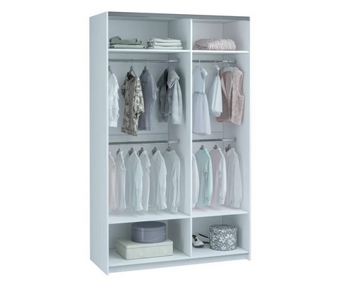 Каждое отделение имеет по две штанги для вешалок, и две полки.