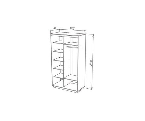 Конструкция шкафа-купе ШОН-1 включает в себя девять полок со штангой для одежды.