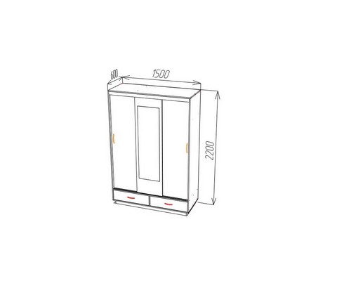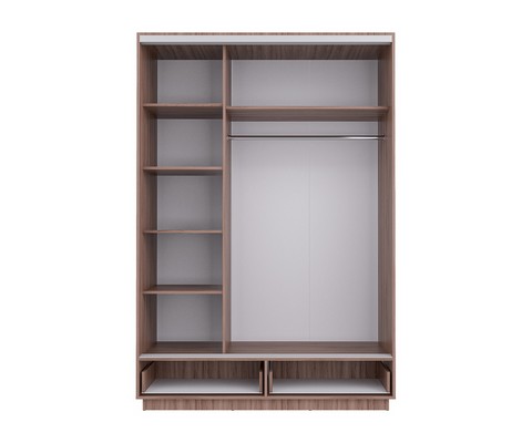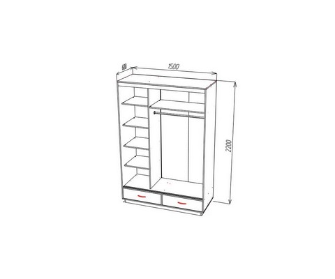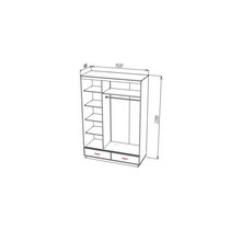 Конструкция шкафа-купе ШОН-5 включает в себя: пять полок, две вместительные ниши, штанга для одежды, два выдвижных ящика, зеркало.