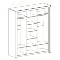 Состоит из отделения с полками и отделений с полками и штангами для вешалок.