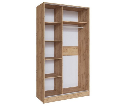 Внутреннее наполнение шкафа включает в себя металлическую штангу для плечиков и секцию с пятью удобными полками.