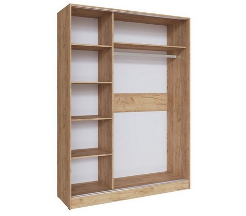 Внутреннее наполнение шкафа включает в себя металлическую штангу для плечиков и секцию с пятью удобными полками.