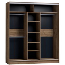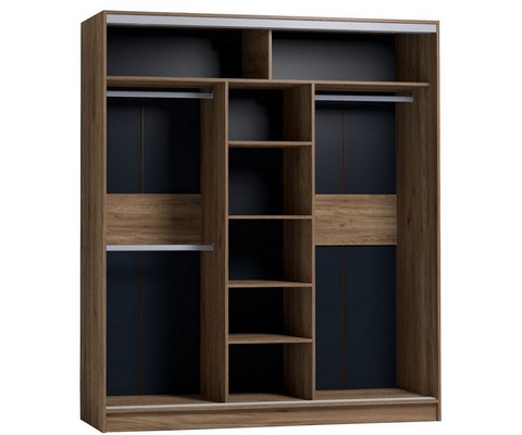 Внутреннее наполнение шкафа состоит из полок для белья и трех стационарных штанг.
