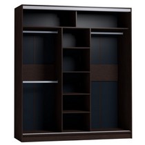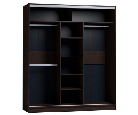 Внутреннее наполнение шкафа состоит из полок для белья и трех стационарных штанг.