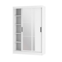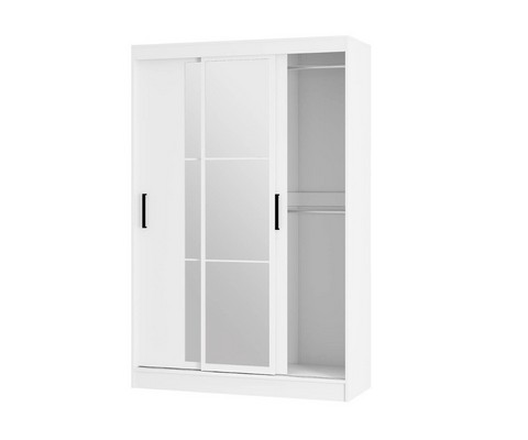 Шкаф-купе оснащен тремя раздвижными створками, центральная створка полностью декорирована зеркалом с еврокромкой, которое визуально расширяет пространство.