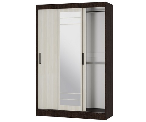 Шкаф-купе Тео ШКК-02 оборудован удобными дверьми с ручками, центральная створка выполнена в виде зеркала с еврокромкой. Внутри шкафа предусмотрены полки для одежды, аксессуаров и других предметов. Дополнительно в шкафу расположены две хромированные штанги для одежды.