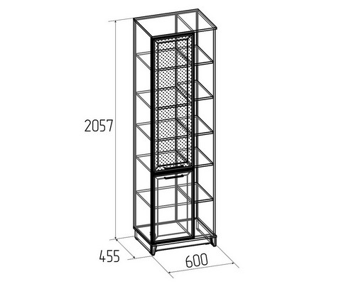 Регулируемые по высоте полки, каждая из которых выдерживает нагрузку до 10 кг.