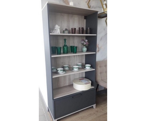 Вместительный шкаф многоцелевого назначения с открытыми полками и закрытой нишей.