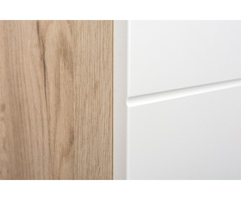 Фасад выполнен из МДФ с фрезерованными горизонтальными линиями.