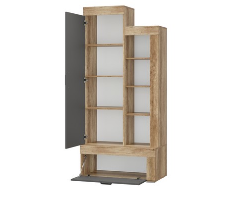 Многофункциональный шкаф ШК-18 отличается необычной конструкцией и будет гармонично смотреться в гостиной в комплекте с другими шкафами Прима.