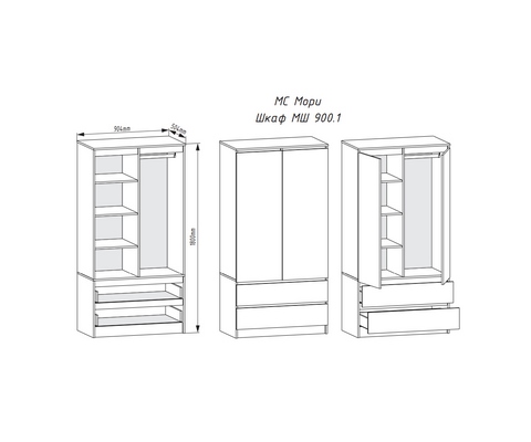 Шкаф Мори МШ 900.1 (графит)