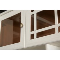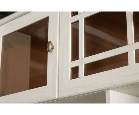 Шкаф оснащён 3 отделениями с распашными дверями и 2 открытыми нишами.