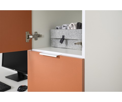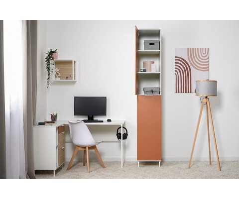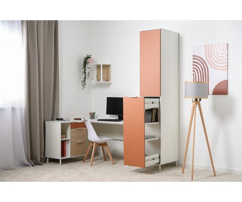 Шкаф-пенал Марвэл 16.316.01 оборудован несколькими полками и нижним выдвижным отсеком, который обеспечивает легкий доступ к вещам.