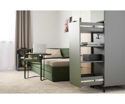Шкаф-пенал Марвэл 16.316.01 оборудован несколькими полками и нижним выдвижным отсеком, который обеспечивает легкий доступ к вещам.