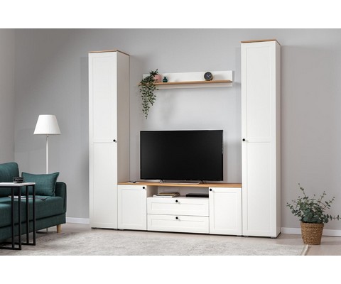 Шкаф-пенал Остин 13.227 (белый шагрень, дуб золотой)