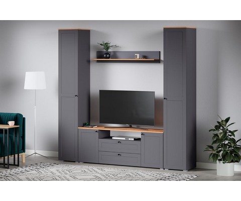 Шкаф-пенал Остин 13.227 (серый графит, дуб золотой)