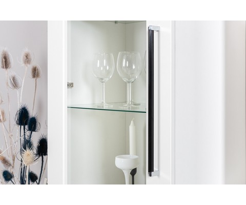Шкаф-пенал с витриной Валенсия 13.218 выполнен в стиле ар-деко.