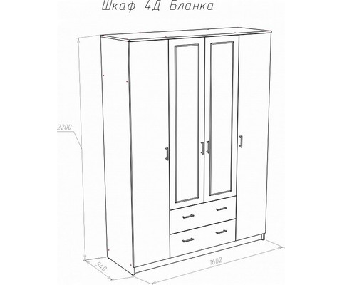 Шкаф платяной Бланка (дуб сонома) 4-дверный