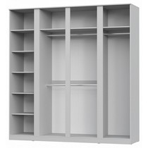 Компоненты, входящие в комплект: 3 штанги для вешалок, 4 дверцы, 7 полок.