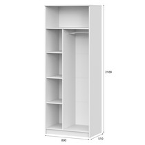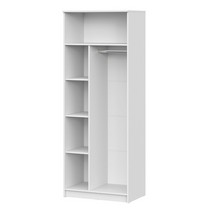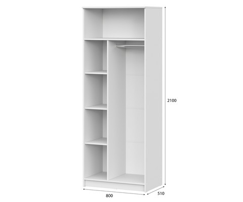 Шкаф оснащен вместительными полками и вешалкой-штангой.