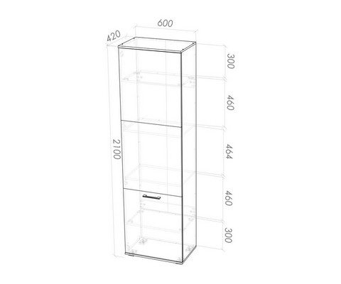 Конструкция шкафа ШОН-18 включает в себя: 4 полки, ручка черная- пластик, регулируемые подпятники цвета хром.