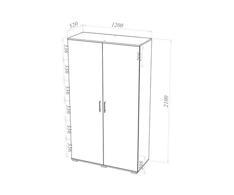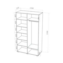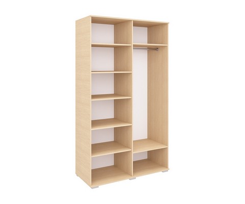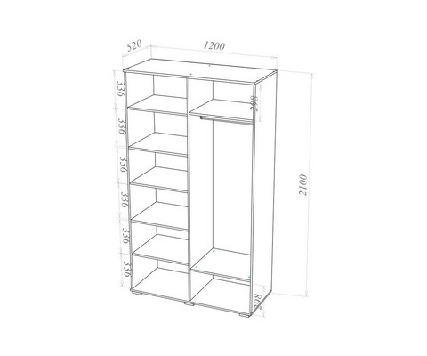 Конструкция шкафа ШОН-20 включает в себя: семь вместительных полок, две ниши, штанга для одежды.