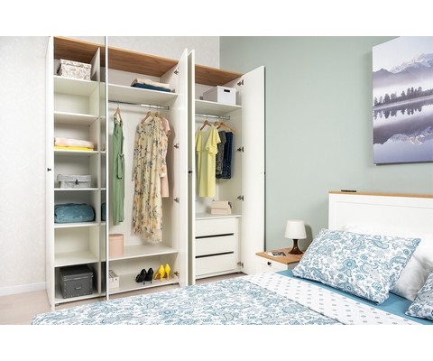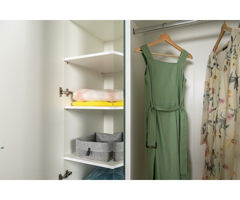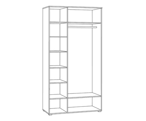 Шкаф для одежды Остин 13.336.03 состоит из двух отделений - с полками для белья и со штангой для вешалок.