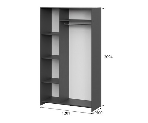 В правой секции - стационарная полка вверху и металлическая штанга.