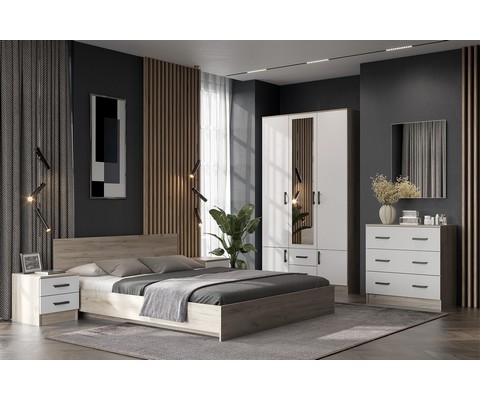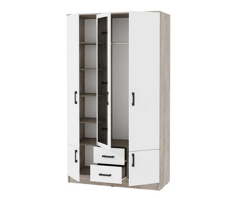 Шкаф трехстворчатый Ронда ШК-3 (Дуб крафт серый, Белый)