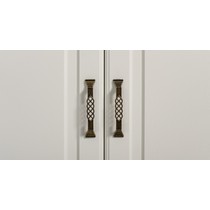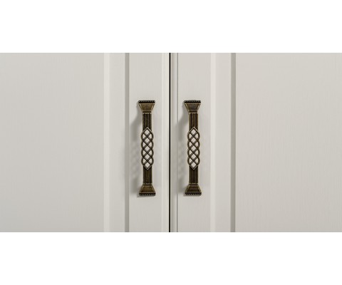Фасады выполнены из МДФ с глубокой фрезеровкой и оснащены металлическими ручками с имитацией под старую бронзу.