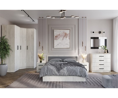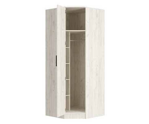 Шкаф угловой Фиеста (дуб крафт белый) наполнение со штангой и многочисленными полками позволит разместить одежду и обувь.